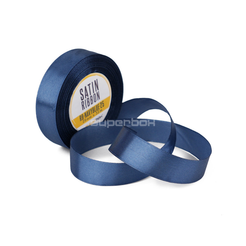 Refined navy blue satin ribbon features a sophisticated latte color with a smooth, glossy finish. Measuring 25 mm in width and 32 meters in length, this ribbon is perfect for adding a refined touch to gift wrapping, crafting, and event decorations.